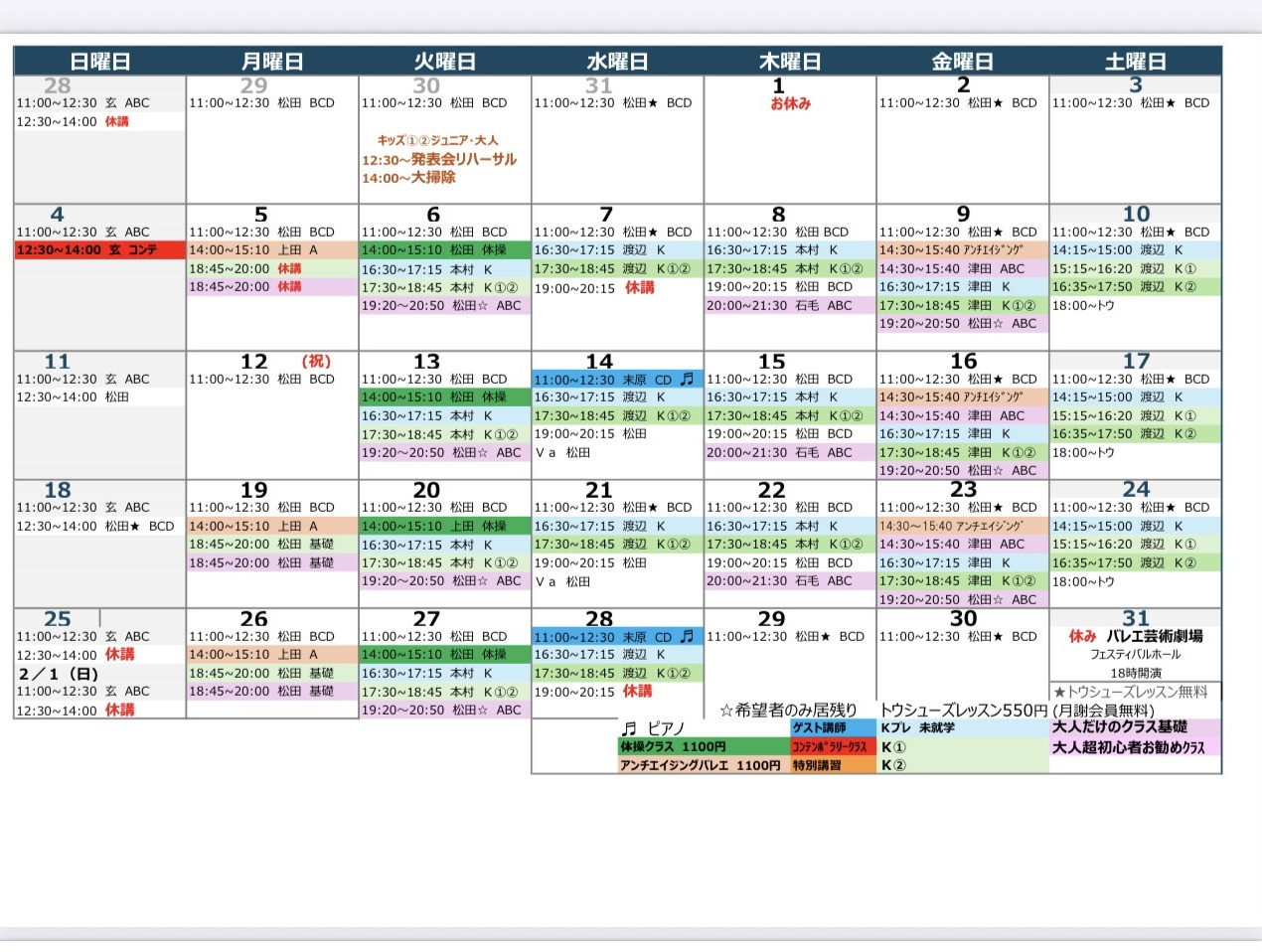 1月スケジュール