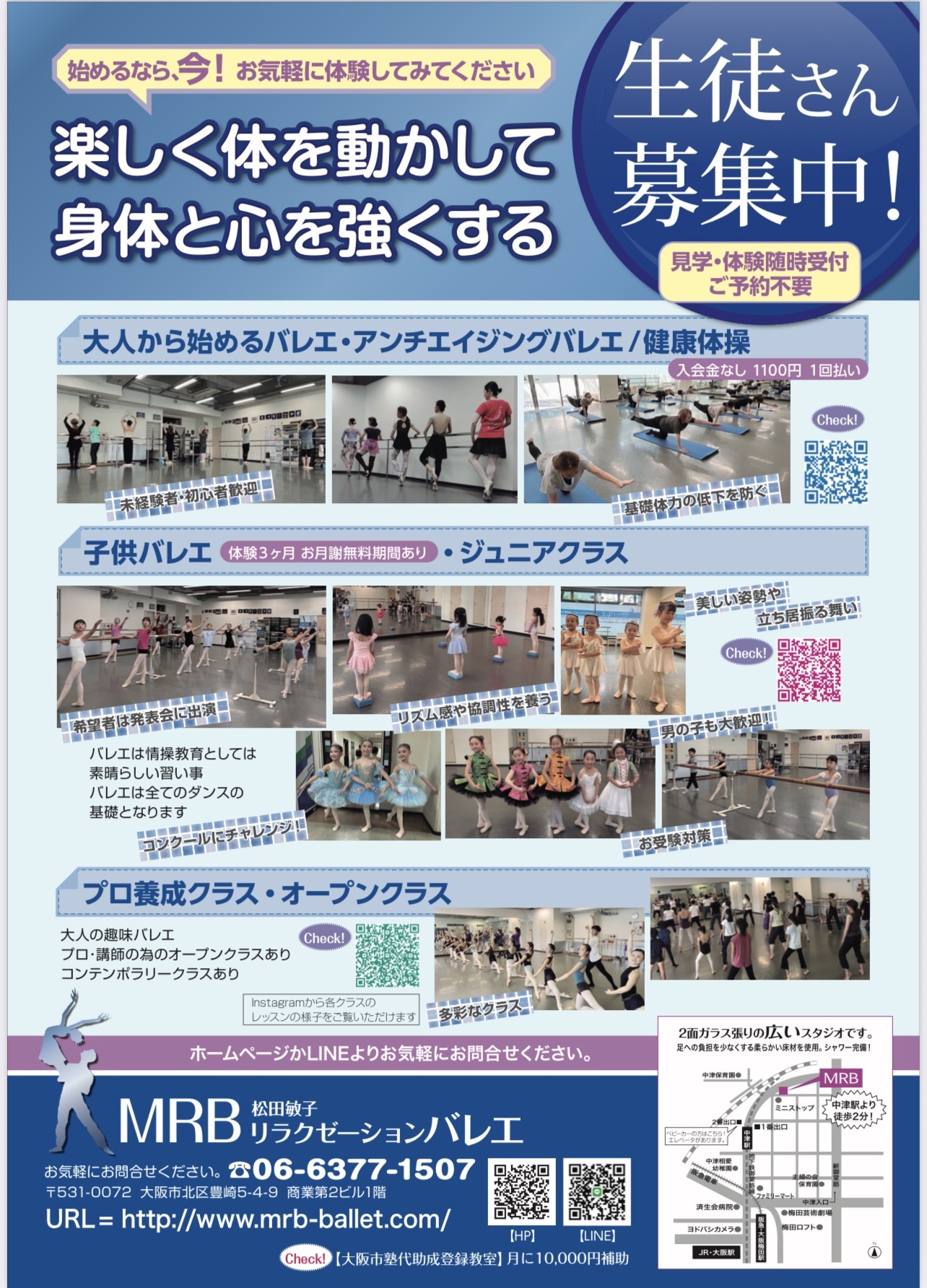 大人から始めるバレエ。呼吸法も取り入れ丁寧に指導。ストレッチに重点。夢のトウシューズにもチャレンジ!! リボンの結び方から説明します。