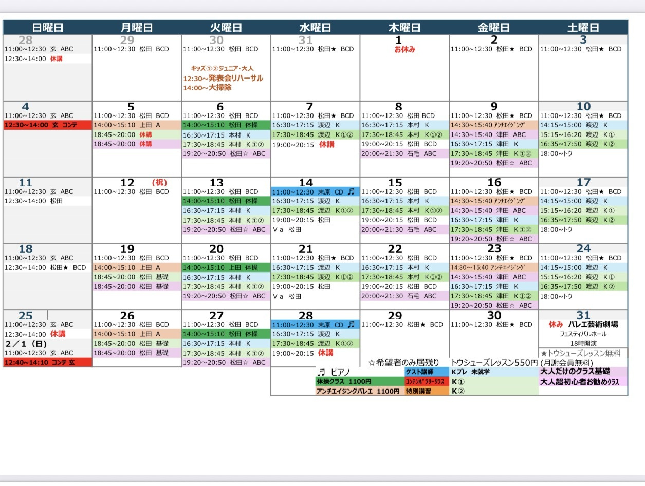 1月スケジュール